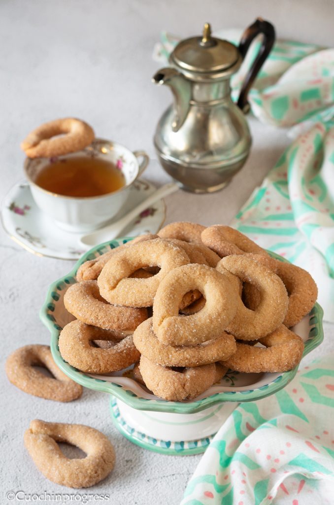 Wanneer de torcetti met boter goudbruin en gaar zijn, haal je ze uit de oven en laat je ze volledig afkoelen.