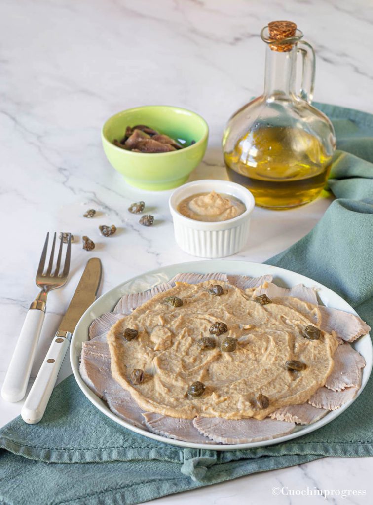 Het gerecht is vrij eenvoudig te bereiden, maar vraagt wel aandacht voor enkele details: de marinering en het garen van het vlees, dat zacht en geurig moet blijven, en de juiste romigheid en zoutheid van de saus die het gerecht prachtig compleet maakt — een perfect evenwicht tussen eieren, tonijn, ansjovis en kappertjes, opgevrolijkt door de juiste hoeveelheid witte wijnazijn.