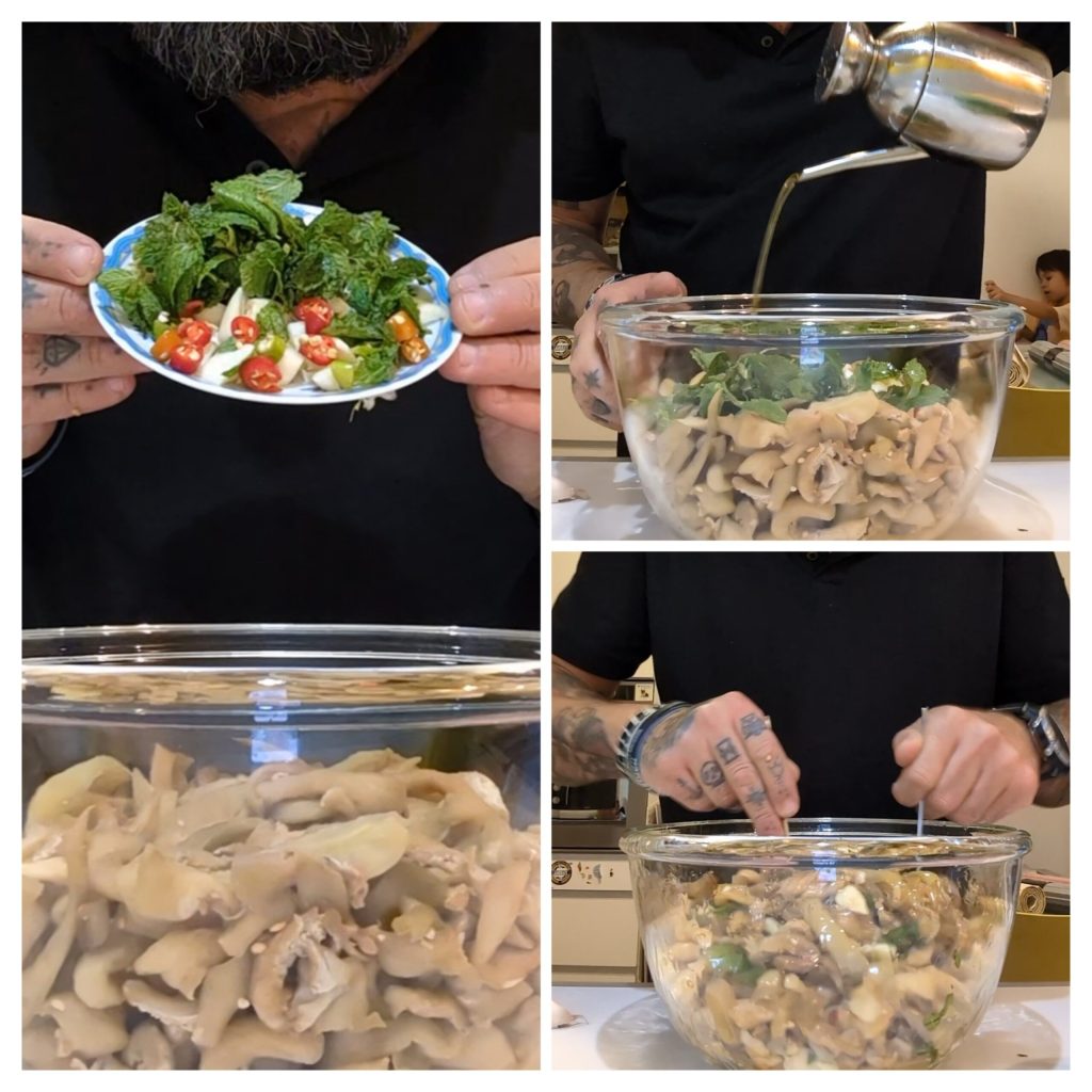 Na de aubergines 48 uur te hebben gelaten, eerst in zout en daarna in azijn, is het tijd om ze naar eigen smaak te aromatiseren, volgens uw persoonlijke smaak, zonder enige regel te volgen, behalve één, die we in de volgende stap zullen zien. Persoonlijk houd ik van aubergines met verse munt, knoflook, extra vergine olijfolie en verse hete peper.