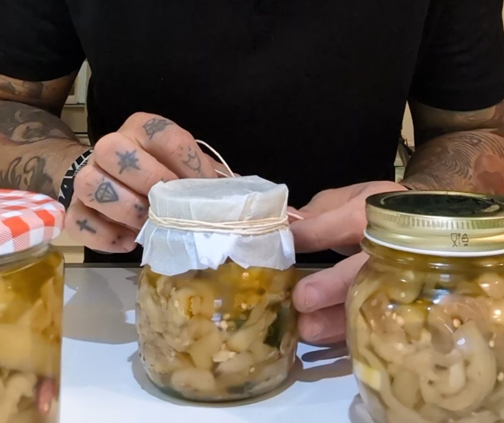Eens de eerste stap van het pekelen voltooid is, gaan we de aubergines inleggen. Dit proces dient niet alleen om het voedsel te conserveren, maar geeft ook die typisch zoute of zure smaak, kenmerkend voor ingelegde producten.