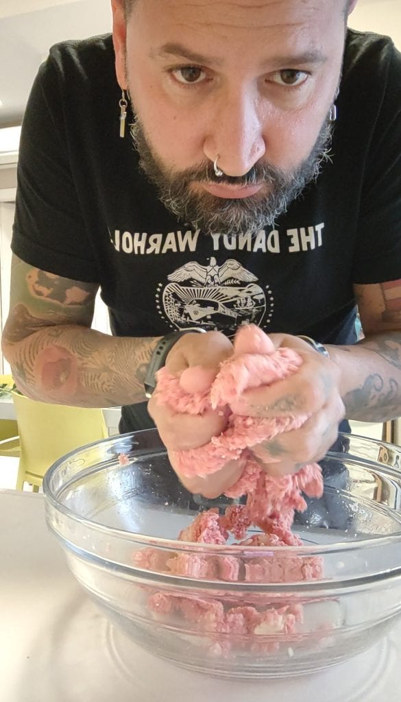 Ik meng alles om de ingrediënten te combineren en een homogeen mengsel te krijgen om de gehaktballen te vormen.