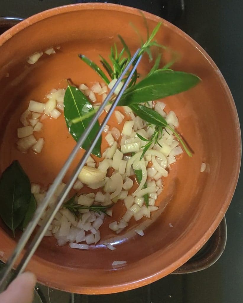Daarom neem ik een teentje knoflook en een mix van kruiden om de valse soffritto op smaak te brengen zonder overtollig zout.