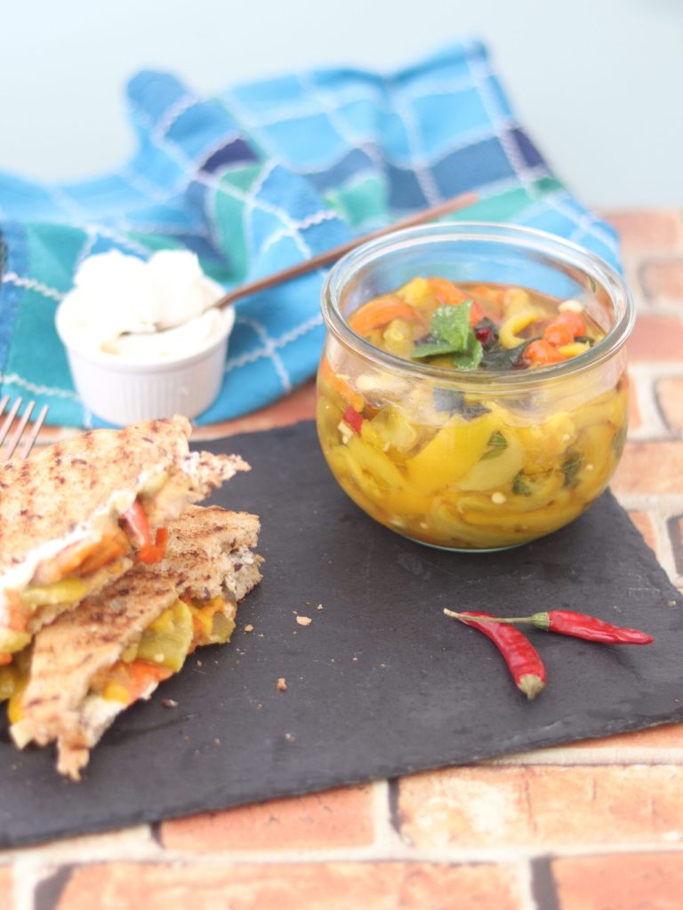 Kortom, na het koken, schoonmaken en plukken van de paprika’s, heb ik ze op smaak gebracht met extra vergine olijfolie, knoflook, verse muntblaadjes en een hete chilipeper.