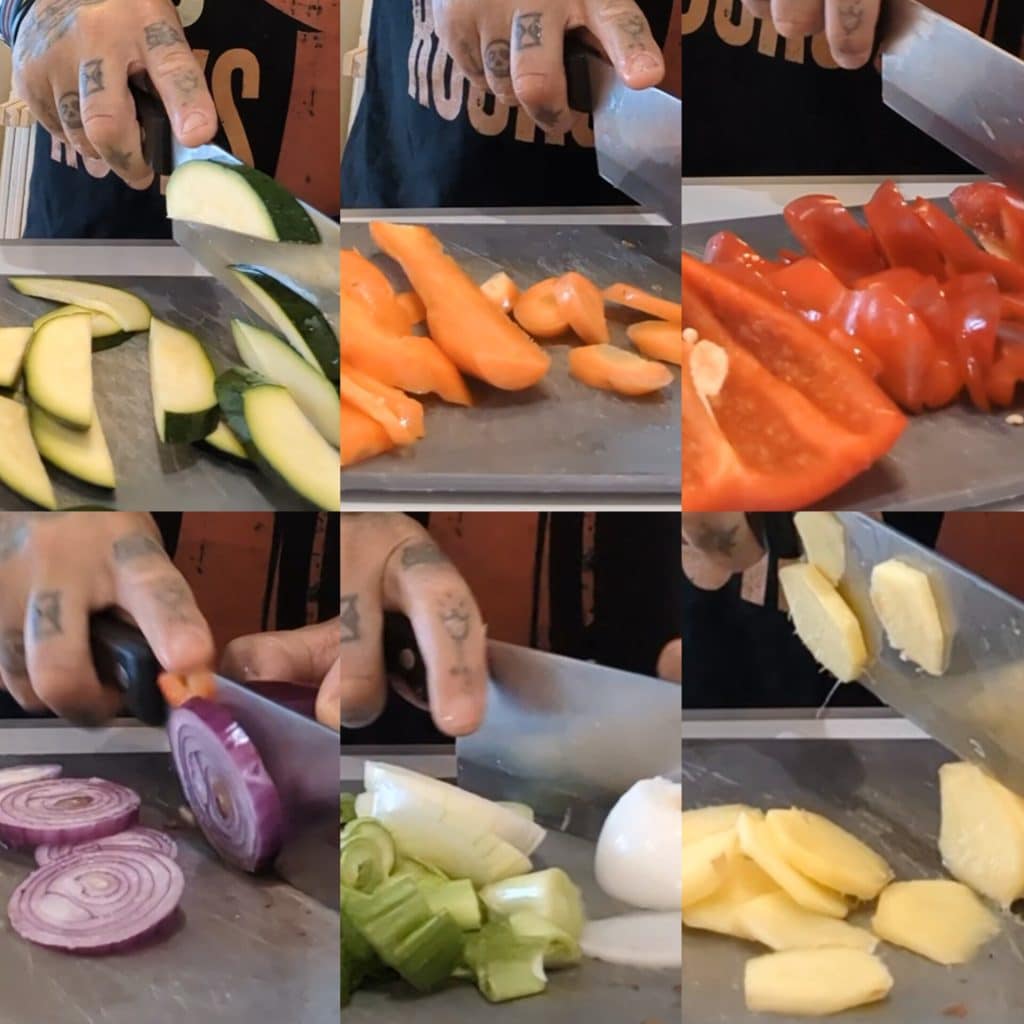 Snijd de groenten in gelijkmatige reepjes of blokjes om een gelijkmatige garing te garanderen.