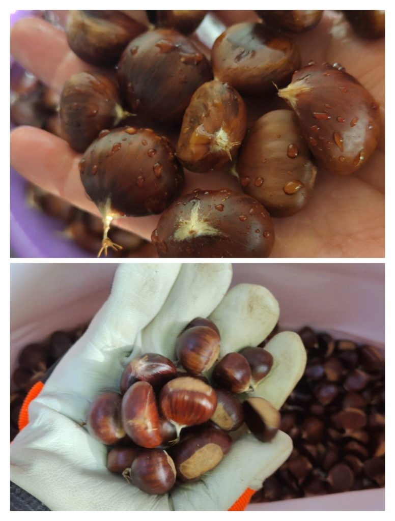 Om kastanjes in heteluchtfriteuse te maken heb ik ze eerst grondig gewassen in koud water om aarde of andere onzuiverheden te verwijderen, omdat ik ze zelf heb verzameld. Als je ze echter in de supermarkt of bij de groenteboer koopt, kun je deze stap overslaan.