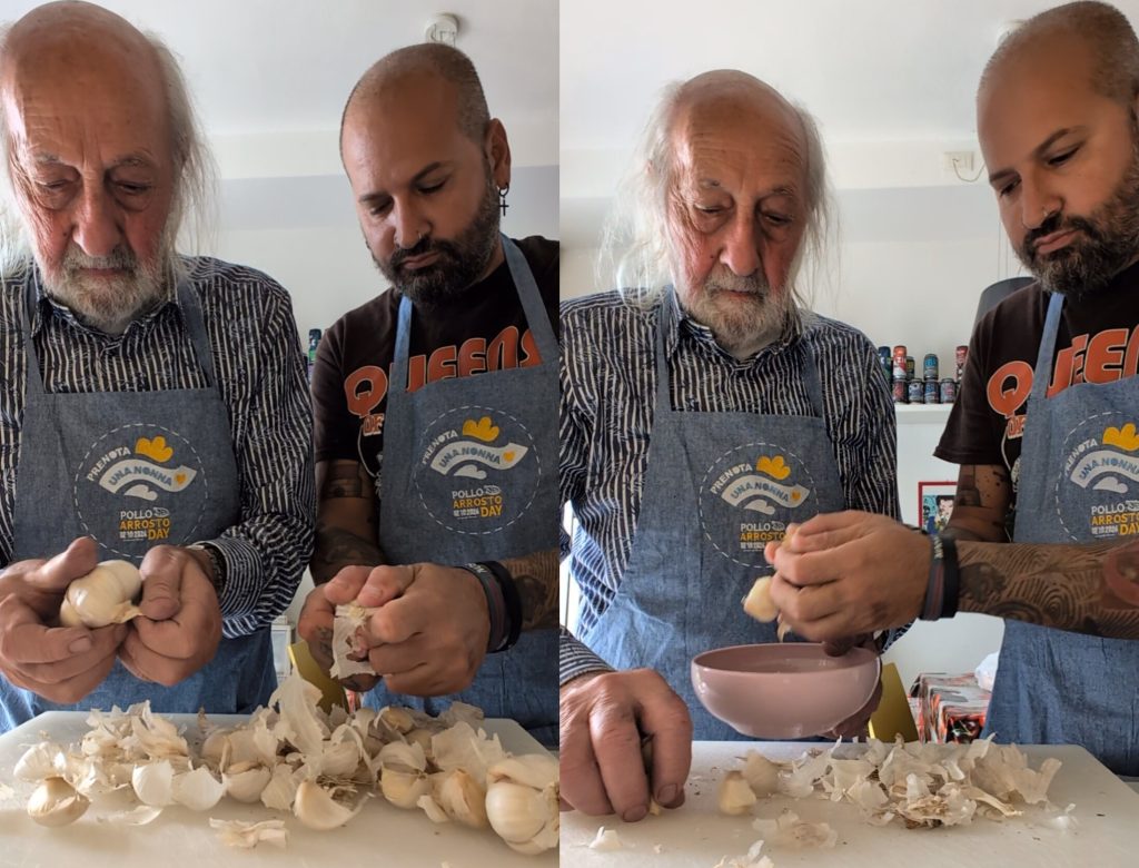 Opa Giorgio, een man van weinig woorden maar met een hart zo groot als een huis, had een zwak voor de geroosterde kip van zijn vrouw. Elke zondag was het feest tijdens de lunch: de uitnodigende geur die door het huis verspreidde, de krokante en goudbruine huid, het malse en sappige vlees… Opa Giorgio zei niet veel, maar zijn ogen straalden van plezier bij elke hap. Jarenlang had hij zijn vrouw in de keuken geobserveerd, bewonderend haar meesterschap in het bereiden van dat eenvoudige maar perfecte gerecht. Hij had nooit gedacht om zelf achter het fornuis te staan, dat koninkrijk aan zijn geliefde partner overlatend. Maar de tijd verstrijkt, en de krachten nemen af. Op een dag, toen hij zijn vrouw vermoeid zag na het bereiden van de lunch, voelde Opa Giorgio een tederheid in zich opkomen en besloot hij iets te doen.”Lieve,” zei hij met een ietwat onzekere stem, “laat me zien hoe je die kip maakt. Misschien doe ik het de volgende keer wel. De vrouw, verrast maar blij, verwelkomde hem met een glimlach in de keuken. Zo begon een middag van leren, tussen lachen, kleine foutjes en veel saamhorigheid. Opa Giorgio, met zijn spreekwoordelijke geduld, volgde elke aanwijzing, onthield elke beweging. De volgende zondag, met een beetje angst maar veel vastberadenheid, ging Opa Giorgio aan de slag. De keuken vulde zich met vertrouwde geuren, en al snel stond er een goudbruine en uitnodigende kip op tafel. De familie, nieuwsgierig, kwam dichterbij om te proeven. Een stilte vol verwachting, gevolgd door de eerste enthousiaste opmerkingen: “Opa, maar het is heerlijk!” Het is precies zoals die van oma! Opa Giorgio, stralend, ging zitten aan tafel. De vrouw, met vochtige ogen, kneep in zijn hand. “Goed gedaan, Giorgio,” zei ze met een glimlach. “Je hebt het geweldig gedaan. Vanaf die dag werd de geroosterde kip op zondag het gerecht van Opa Giorgio. Het was niet zo perfect als die van zijn vrouw, maar het had een speciale smaak, gemaakt van liefde en toewijding. En elke keer dat de familie samenkwam rond die kip, voelde men de warmte van een nog sterkere band. Opa Giorgio was geen groot chef-kok geworden, maar hij had iets veel belangrijkers geleerd: de kunst van het zorgen voor de mensen van wie hij hield, zelfs met een eenvoudige handeling zoals het bereiden van hun favoriete gerecht. En uiteindelijk was de perfectie niet in de kip zelf, maar in de liefde waarmee hij was gekookt.