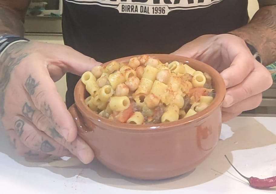 Pasta en kikkererwten is een traditioneel Italiaans gerecht dat veel voorkomt in de zuidelijke en centraal-oostelijke regio’s. Het is een arm gerecht maar zeer voedzaam dankzij de kikkererwten die, zoals alle peulvruchten een aanzienlijke hoeveelheid eiwitten bevatten. In combinatie met de pasta krijg je een kwalitatief, super smakelijk en voedzaam gerecht. Uitstekend vooral in de koudere seizoenen van het jaar om snel de verloren energie van de dag terug te winnen.