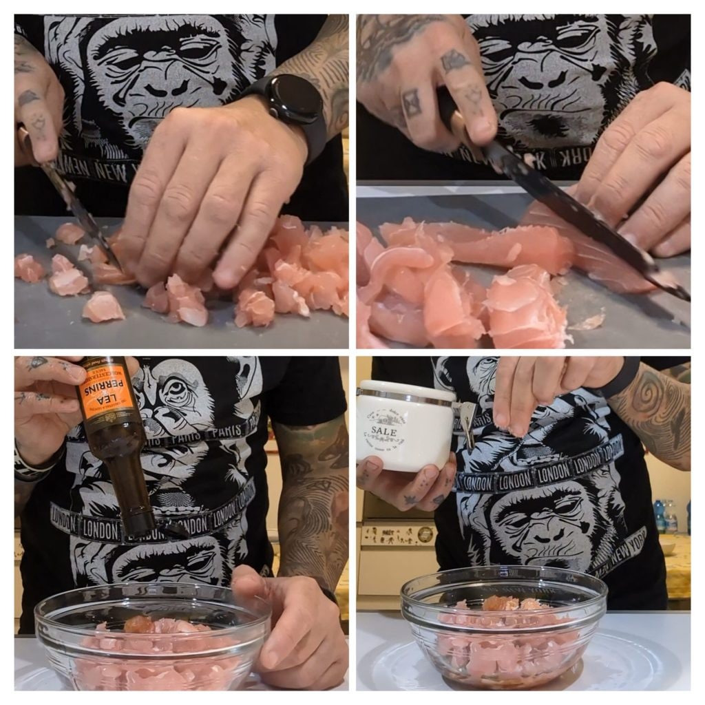 Nu, terwijl we wachten tot de pasta gaar is, kunnen we ons wijden aan het bereiden van de tonijntartaar, want die moet minstens 15 minuten marineren, dezelfde tijd die nodig is voor het koken van de pasta. Natuurlijk kun je deze ook voorbereiden voordat je begint met het koken van de pasta. De keuze is aan jou. Ik heb hem alleen gemarineerd met worcestersaus en Maldon zoutvlokken.