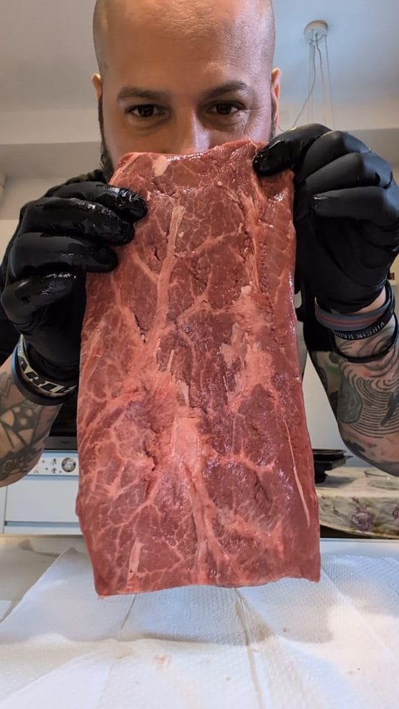 Of je nu een stuk hebt gekocht dat als “schoudermuis” is gelabeld maar al schoongemaakt is (en daarmee feitelijk een Flat Iron is geworden) of specifiek een “Flat Iron Steak”, dit recept onthult de geheimen voor een ideale bereiding door het gebruik van de reverse sear-methode (omgekeerd aanbraden), die zorgt voor een gelijkmatig gegaard interieur en een perfecte buitenste korst.