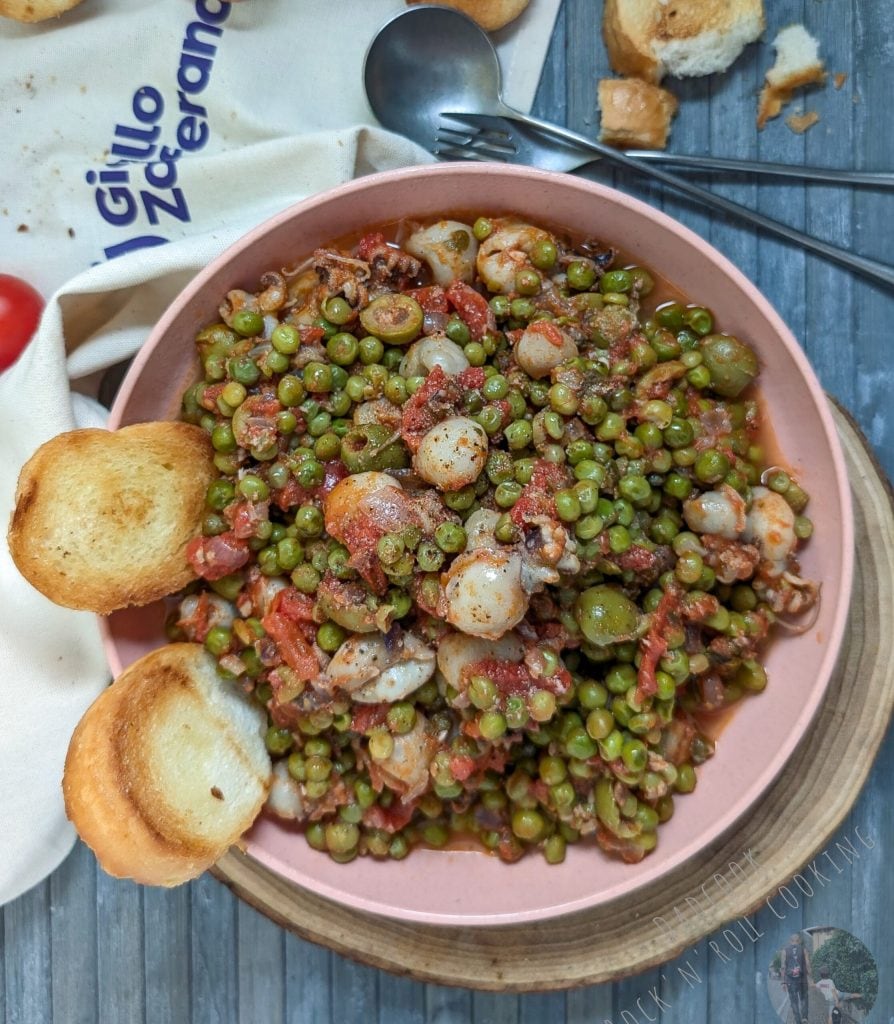 En hier zijn de Inktvis met erwtjes, klaar om van te genieten! 🎉 Een eenvoudig maar smaakvol gerecht, perfect voor een lunch of diner in gezelschap. Schik de inktvis en de erwtjes op een mooi serveerschaal en bedek alles met de warme en geurige saus. 😋 Vergeet de geroosterde sneetjes brood niet: ze zijn perfect om in de saus te dippen en geen druppel van dit heerlijke condiment te verspillen! 😉