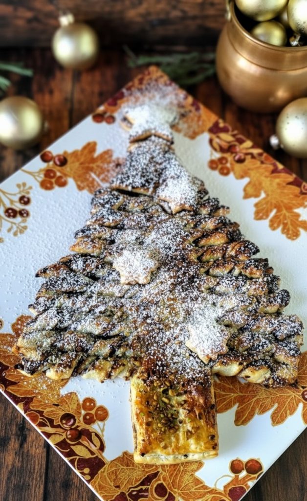 De bladerdeegboom met chocolade en pistache is een van die desserts die perfect de kerstgeest belichaamt: eenvoudig, gezellig en heerlijk.