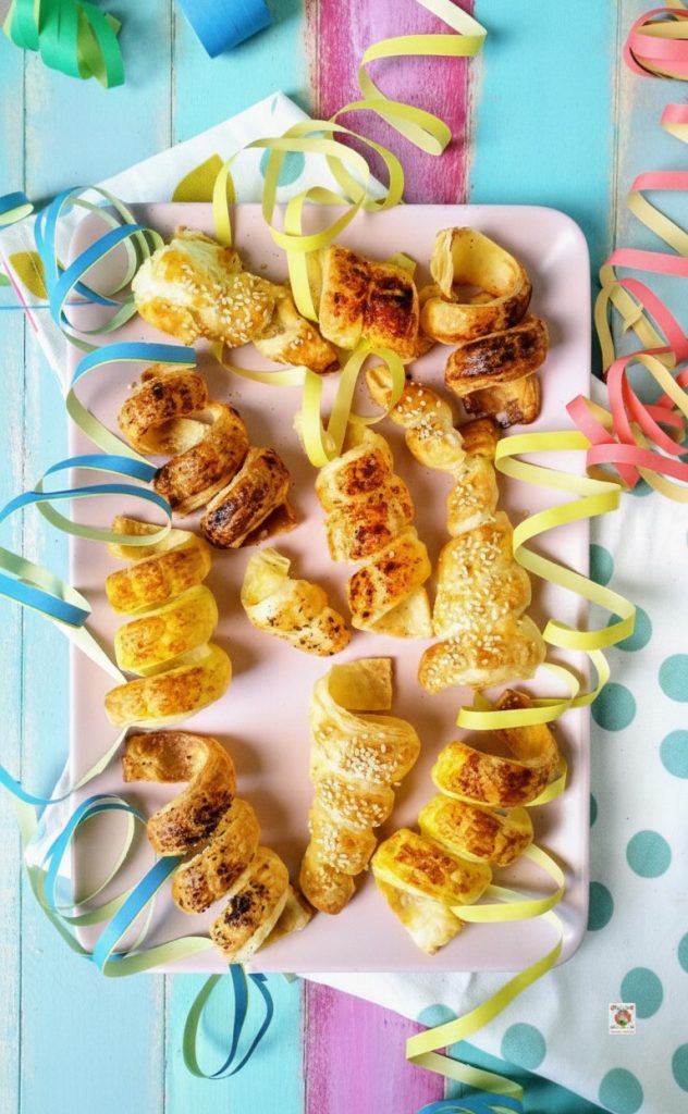 De hartige bladerdeeg slingers zijn een smakelijk aperitief, perfect om de carnavalsvieringen op een originele manier te openen.