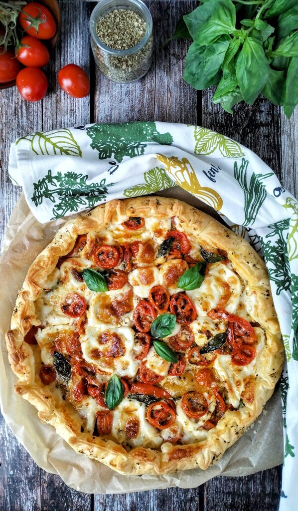De hartige taart met cherrytomaatjes en mozzarella is het perfecte recept om de kleuren, geuren en smaken van de zomer in een nieuwe en onweerstaanbare vorm op tafel te brengen. Geïnspireerd door de beroemde caprese salade, is deze rustieke taart een explosie van smaak en eenvoud: sappige tomaatjes, gesmolten mozzarella en een zeer geurige toets van verse basilicum en oregano, verpakt in een knapperig omhulsel van bladerdeeg of brisée.