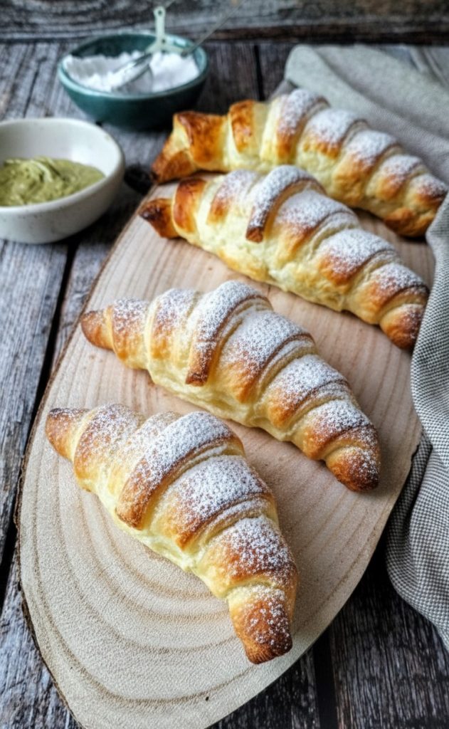 Je hoeft geen meesterbakker te zijn om dit recept te maken en je kunt het naar wens personaliseren door de croissants te vullen met je favoriete vullingen, zowel zoet als hartig. Je kunt ze ook gewoon leeg genieten, misschien met een beetje poedersuiker erover.
