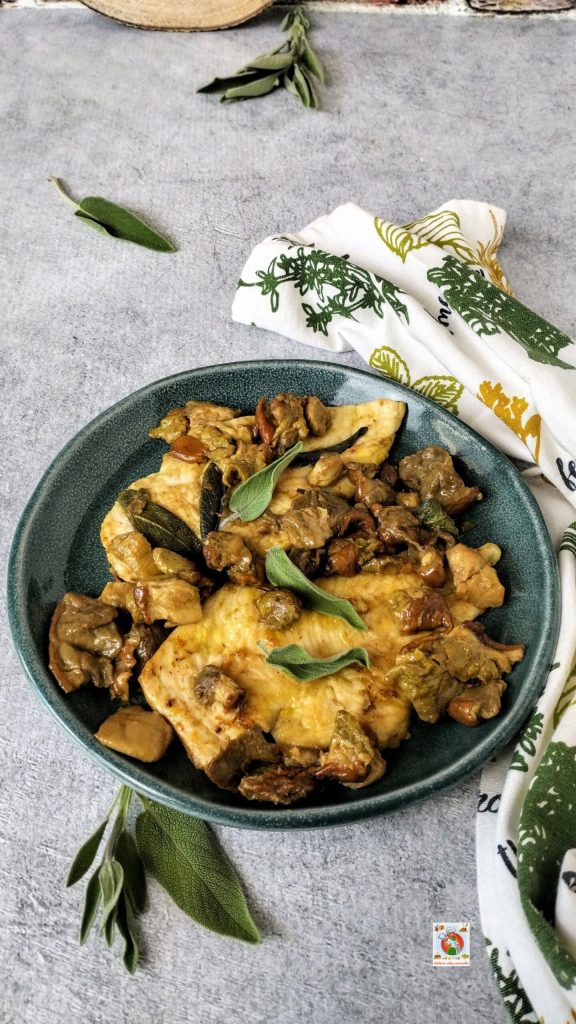 Wie mij kent, weet hoeveel ik houd van eenvoudige gerechten, die de herinnering aan tradities en geliefde mensen met zich meedragen. Elke keer als ik deze kipfilets bereid, herinner ik me weer de familiediners, die zondagen waarop de keuken het kloppend hart van het huis was, met de geur van champignons en salie die de lucht vulde en een glas wijn klaar om te toosten op de goede tijden.