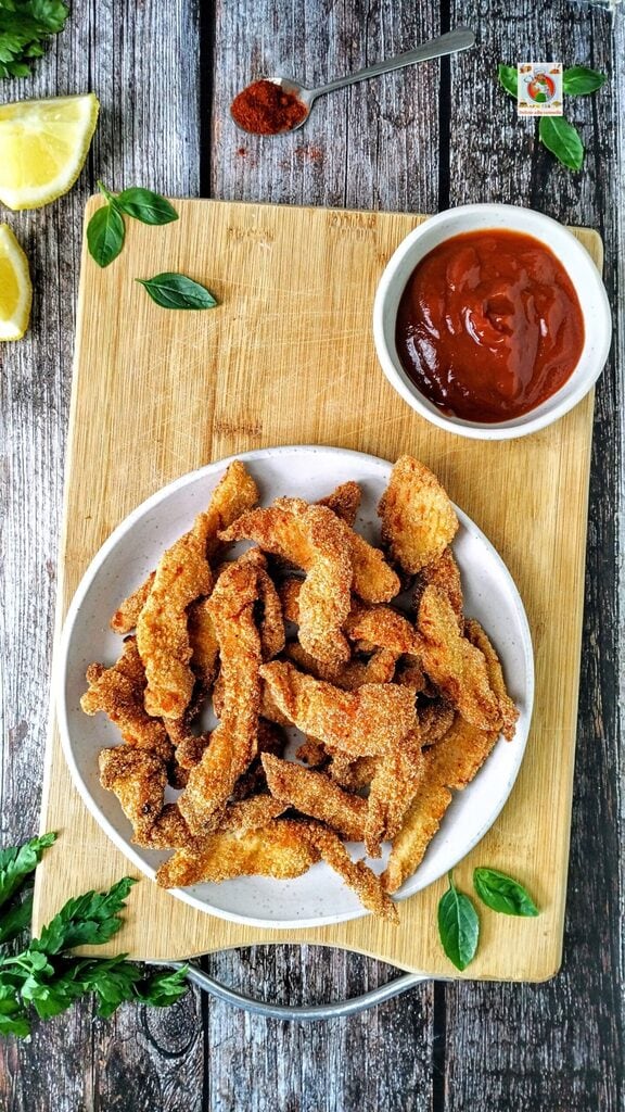 Zeker. Besprenkel de gepaneerde reepjes met een beetje olie en bak ze 12-15 minuten op 200°C, halverwege keren. Zo krijg je een lichtere versie die nog steeds krokant is.