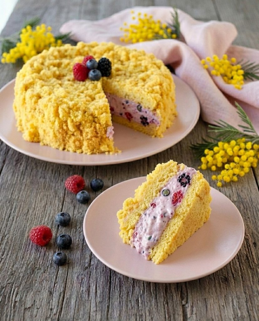 Mimosa-taart met bosvruchten: een extra lekkere en originele versie