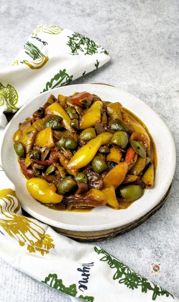 De echte magie begint in een hete pan, waar verse paprika’s, in reepjes gesneden, suiker, azijn, kappertjes en groene olijven ontmoeten. De ingrediënten vermengen zich met elkaar en creëren een explosie van smaken waarbij zoet en zout perfect samensmelten. Het resultaat is een onweerstaanbare bijgerecht, met een contrast tussen knapperigheid en zachtheid dat verleidt bij de eerste hap.