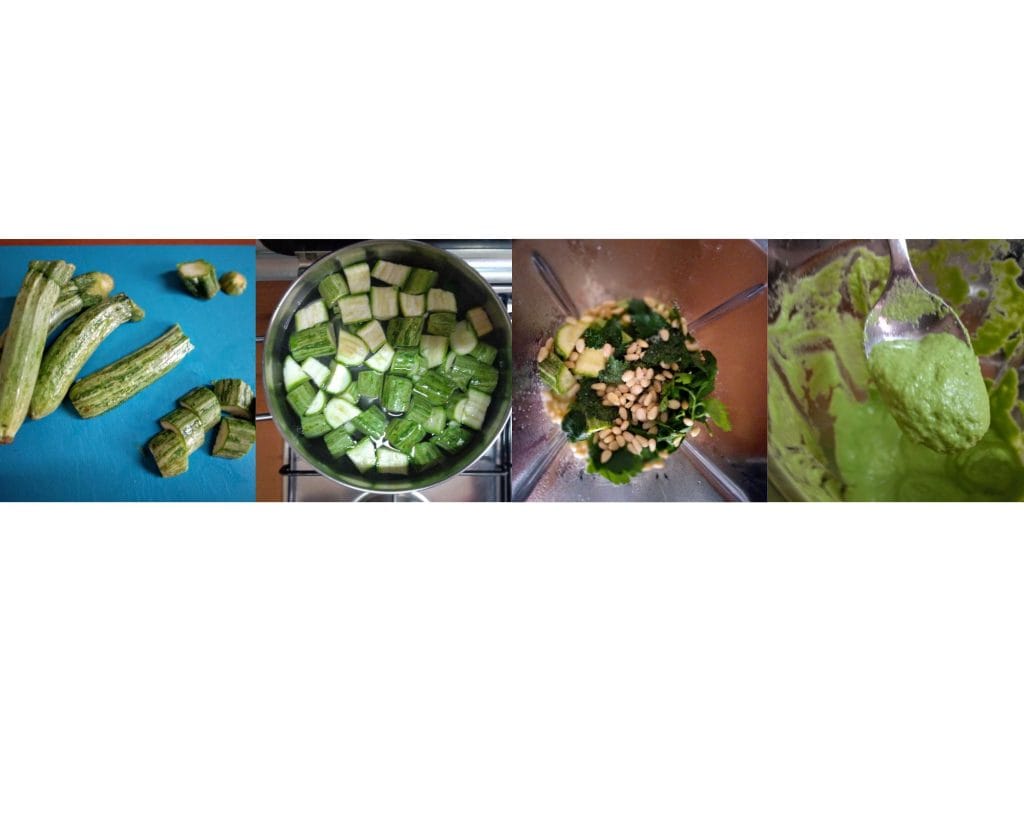 Laat de courgettes 5 minuten blancheren in een pan met kokend water en zout.