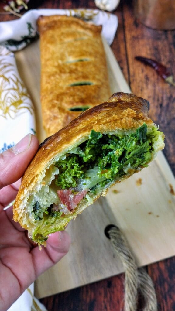 De strudel met raapstelen en worst is een smakelijk gerecht dat de eenvoud van traditie combineert met creativiteit in de keuken.