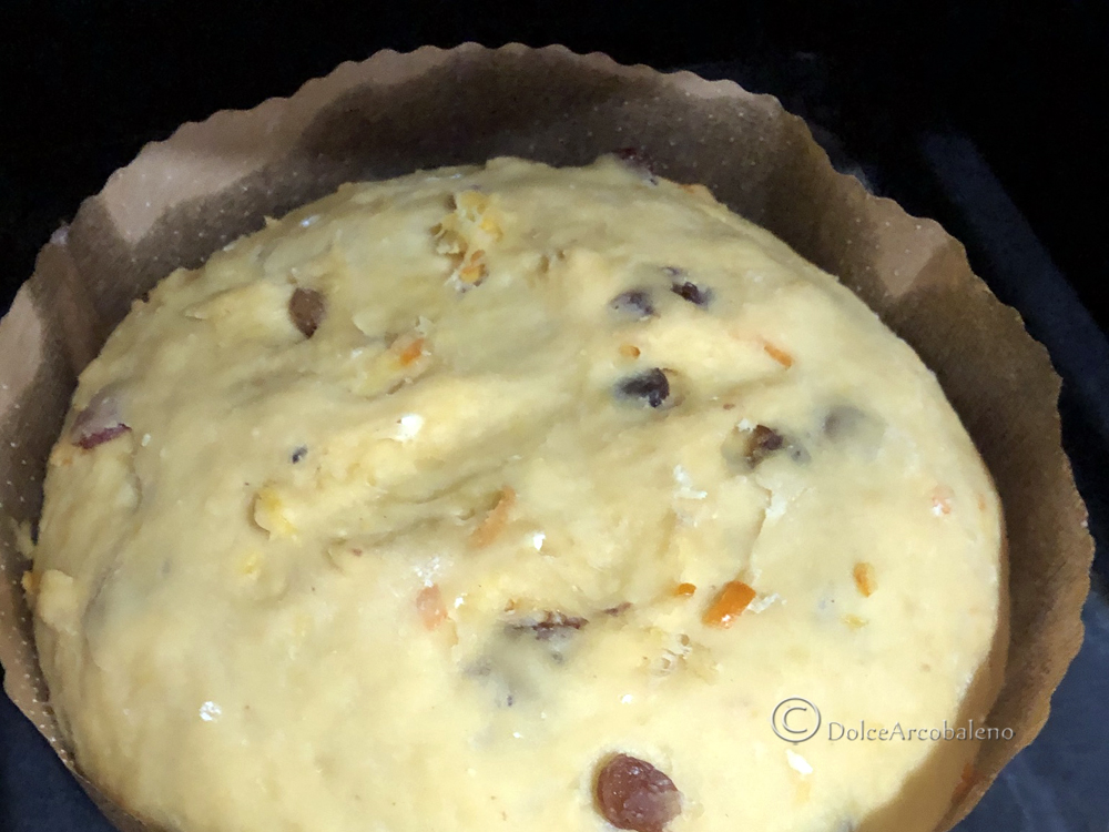 • Smeer de binnenkant van de 1 kg panettone vorm met een beetje maïsolie en giet het verkregen deeg erin.
