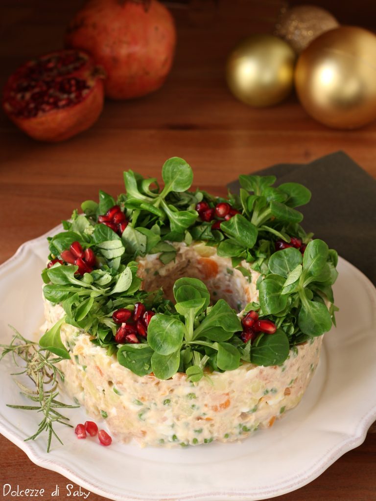 Op een kersttafel die zichzelf respecteert mag de Russische salade niet ontbreken, die je zeker minstens één keer in je leven hebt gemaakt. De mijne is klassiek met de toevoeging van tonijn en de bijzonderheid is dat ik een soort krans heb gemaakt, versierd met veldsla en granaatappelpitten die meteen aan Kerstmis doen denken. Maar als je nog nooit Russische salade hebt gemaakt, hier is hoe je het in het volgende recept maakt.