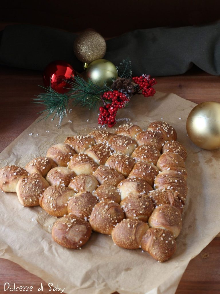 Maar waarom niet met Kerstmis een volkorenbrood kerstboom maken, voor iedereen die geen wit brood kan of wil eten. Ik heb er grof zout op gedaan en geserveerd met voorgerechten, zo is het een eenvoudige en leuke manier om tijdens de feestdagen broodjes te serveren.