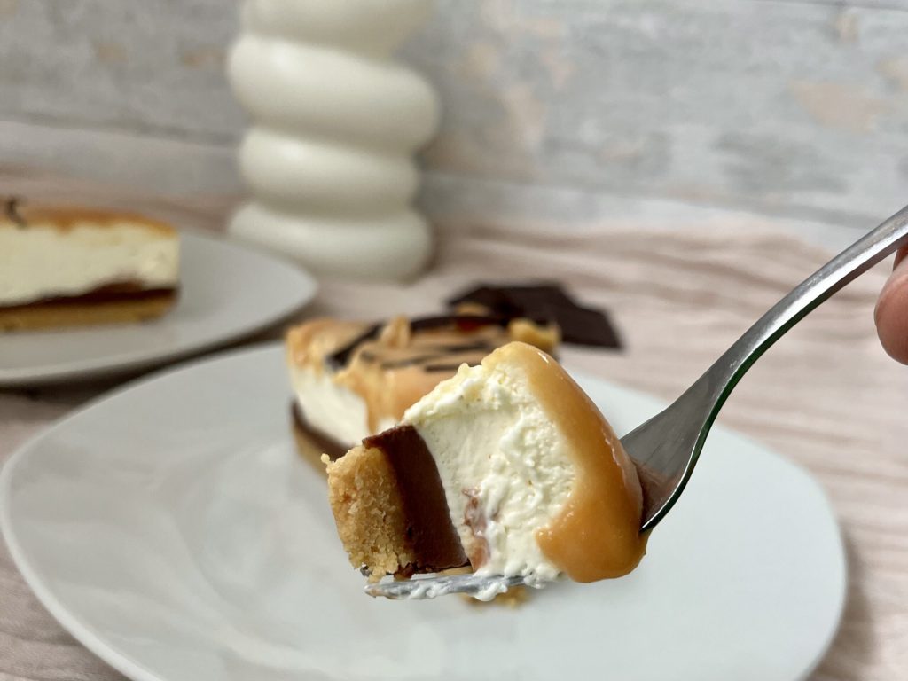 De cheesecake met gezouten karamel, pinda’s en chocolade is een rijke en onweerstaanbare taart die je smaakpapillen bij de eerste hap zal veroveren.