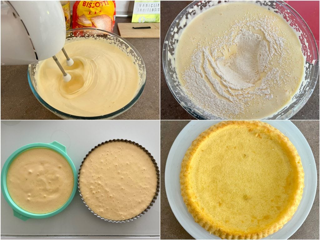 Het is samengesteld uit een zachte en geurige glutenvrije oliesponscake, en met hetzelfde mengsel heb ik ook een kleine schijf spongecake apart bereid om in blokjes te snijden voor de decoratie. Gezien de grootte kun je beide tegelijkertijd in de oven bakken.