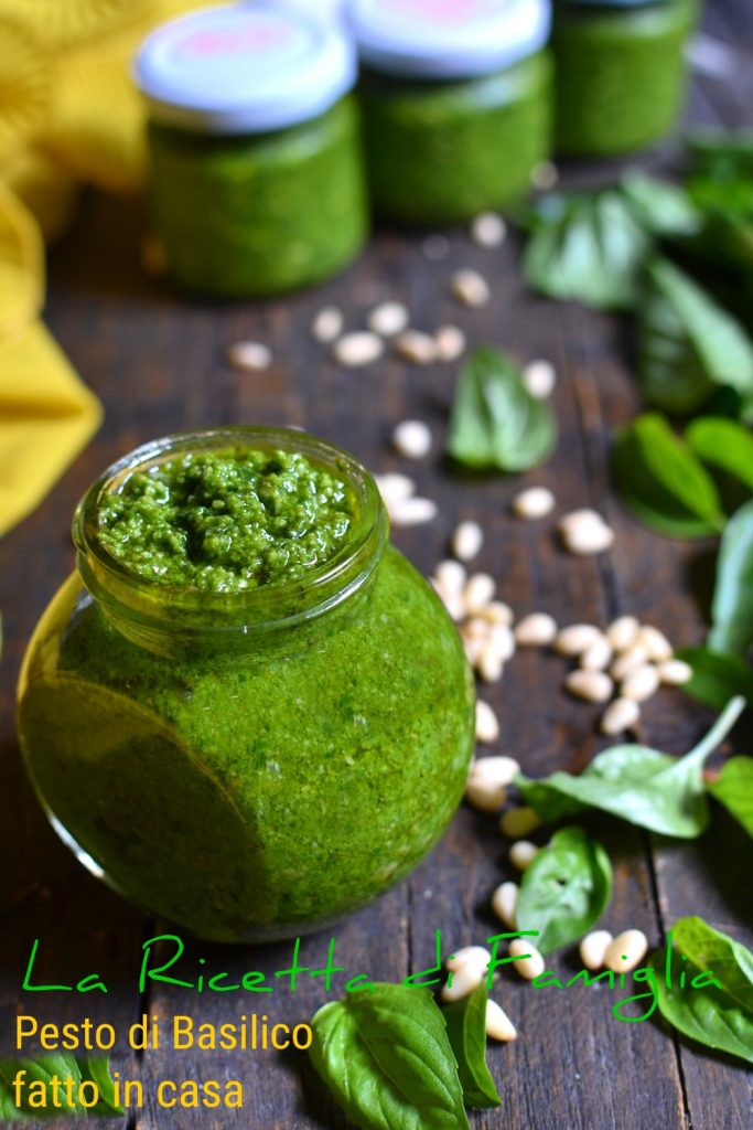 Basilicumpesto, de goede, is diegene die thuis gemaakt wordt, met de oude familierecepten. Al jaren bereiden mijn moeder en mijn vader (super actief in dit soort huisgemaakte bereidingen, dus het is onmogelijk hem niet te noemen) tijdens de zomer een industriële hoeveelheid basilicumpesto: lekker, romig en met een schitterende kleur, bijna jaloersmakend ten opzichte van de Ligurische traditie. Voor mij is het echt lekkerder dan de Genovese pesto. Ik dacht altijd: “ik zal het nooit zo doen, zelfs niet met hun recept”. Jarenlang heeft mijn smaakpapillen genoten van die heerlijke pesto, tot ik dit jaar dacht: “misschien is het tijd om dit familierecept te proberen”. En hier ben ik dan, met het recept in de hand en een industriële hoeveelheid verse basilicum zojuist geplukt, Italiaanse pijnboompitten, 2 delen Parmigiano Reggiano en ongeveer 1 deel pecorino, olie, knoflook en zout. Het lijken gewone ingrediënten, maar dat zijn ze niet: het is erg belangrijk om kwaliteitsproducten te kiezen, vers, goed gerijpt, enzovoort. De echte magie gebeurt in die korte momenten van verwerking: je moet het goed en snel doen om oxidatie van de basilicumblaadjes te voorkomen; daarvoor is het ook noodzakelijk om de olie te gebruiken die nodig is zonder te zuinig te zijn. Maar laten we nu samen deze heerlijke basilicumpesto bereiden, ook al heb ik het gisteren al gemaakt, en ik kan je vertellen dat ik een hemelse pesto kreeg, precies hetzelfde als die van mijn moeder. Met haar recept en haar tips, wat een voldoening! Nu geef ik het recept van mijn moeder met groot plezier aan jullie door, bewaar het goed alsjeblieft.