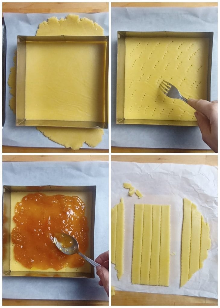 Deze keer heb ik ervoor gekozen om het in een praktische vierkante versie te maken door gebruik te maken van een vierkante taartvorm en de basis op de met bakpapier beklede bakplaat te leggen. Ik laat je de link achter tussen de hulpmiddelen van het recept.