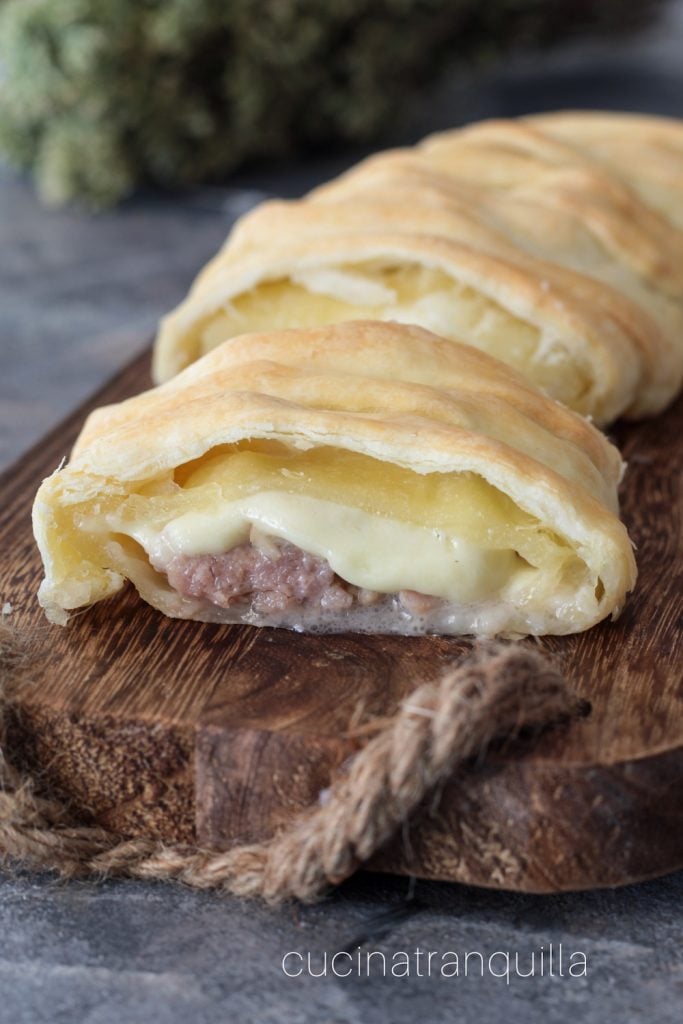 Bladerdeeg met worst en champignons