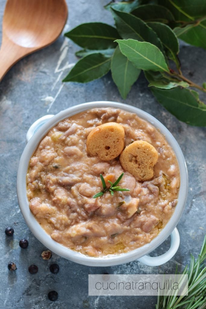 Borlotto bonensoep, een warme en gemakkelijke eerste gang om te maken, met gedroogde bonen.