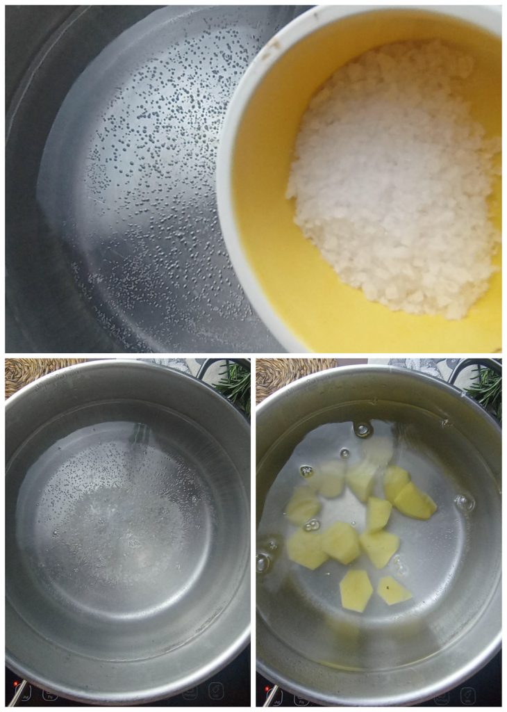 Het geheim is om de aardappelen in niet te grote blokjes te snijden, zodat de kooktijd korter is.
