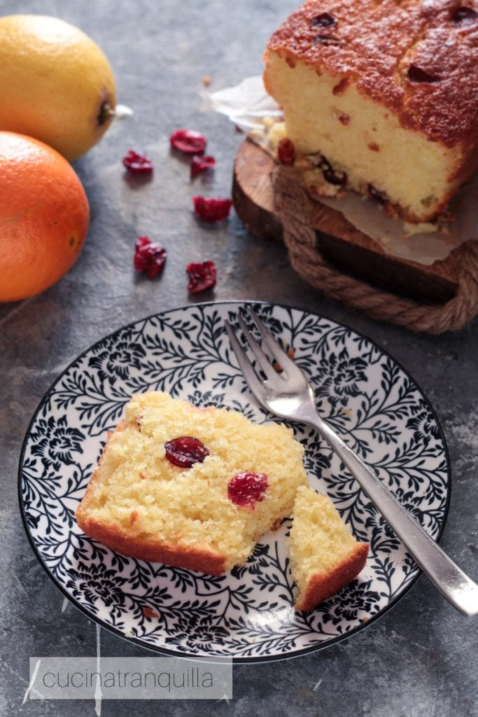 Citrus plumcake met gedroogde bosbessen, een gemakkelijk en smakelijk dessert om in een paar ogenblikken te bereiden, allemaal in één kom, perfect om zelfs met een vork te verwerken.
