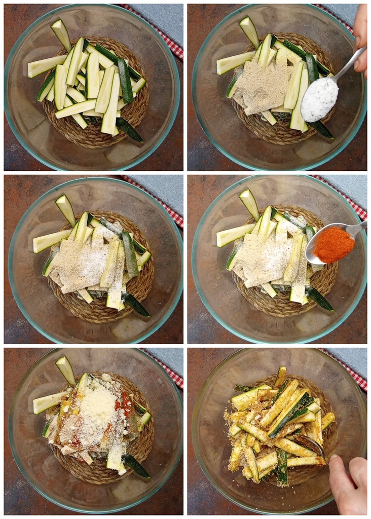 Courgettesticks met pittige paprika, een smakelijk bijgerecht dat in enkele minuten te maken is.