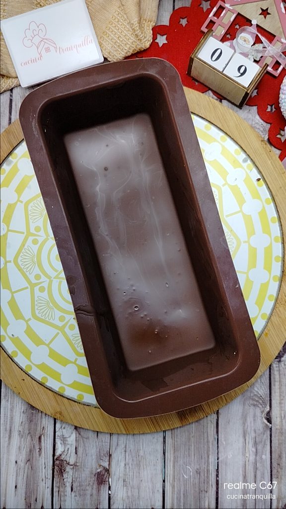 Maak het af door de nougat af te sluiten met de resterende gesmolten chocolade. Als het ondertussen is afgekoeld, verzacht het opnieuw in de magnetron of au bain-marie voor een paar seconden.