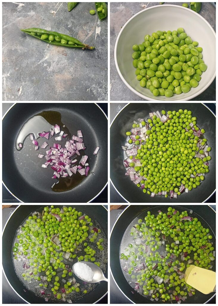 Erwten en spek in de pan met rode ui, een eenvoudig, snel en smakelijk recept met verse erwten, een uitstekende vervanging voor de erwten met spek, die al op de blog aanwezig zijn.