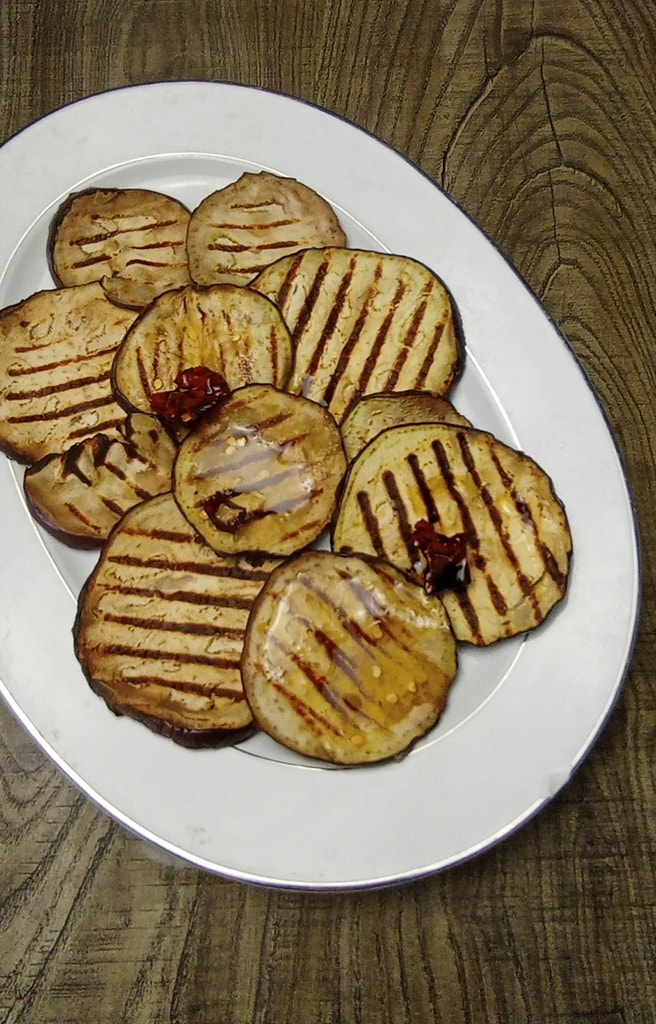 Gegrilde aubergines met zoete gedroogde paprikasaus, een eenvoudig en snel recept, perfect als bijgerecht en voorgerecht.