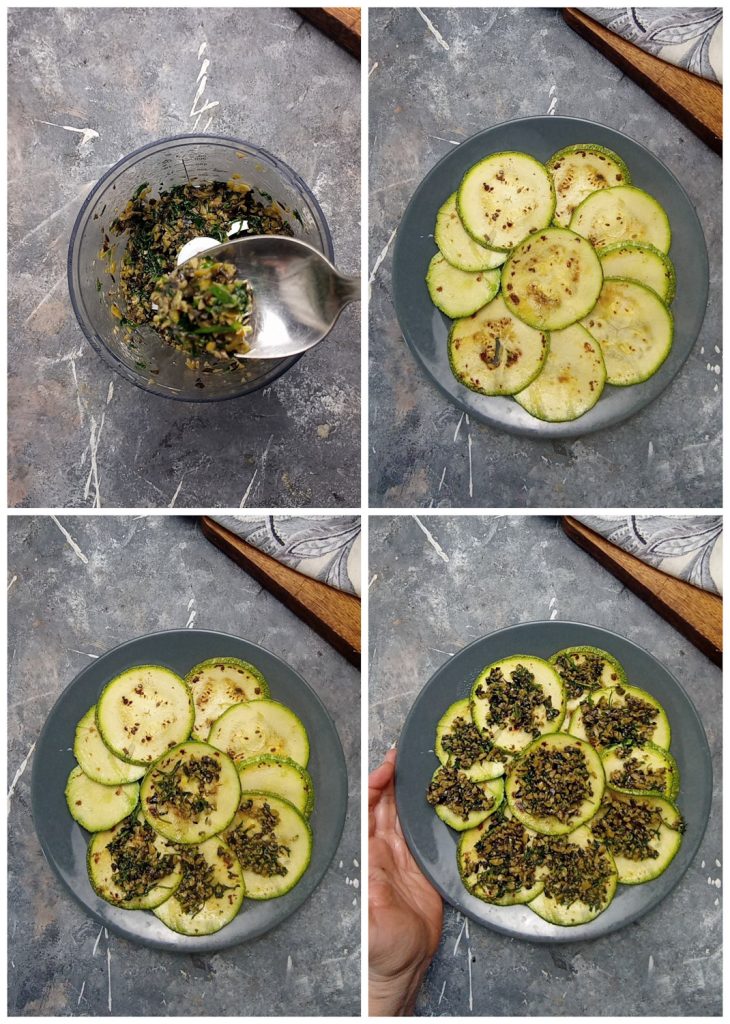 • Leg de courgettes op een bord en breng ze op smaak met het verkregen mengsel.