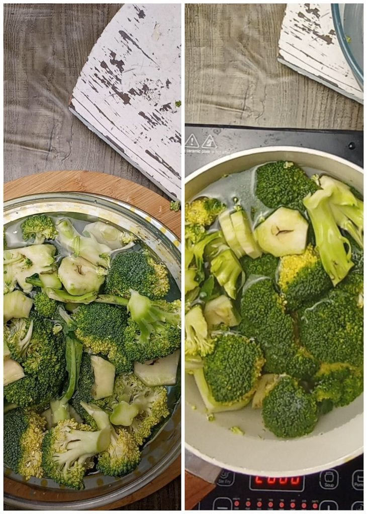 Snijd ook de roosjes, spoel ze af onder koud stromend water en blancheer ze in een pan met ruim gezouten water.