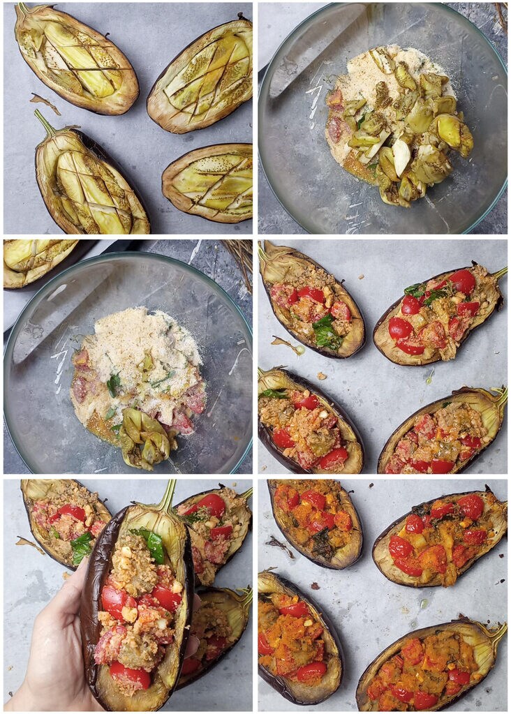 De truc om een bevredigend eindresultaat te krijgen, is door de aubergines voor te koken zodat het hart kan verzachten en vervolgens voor de vulling kan worden gebruikt.