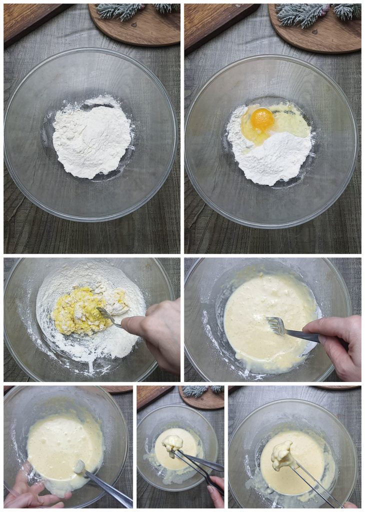 Meng in een kom de bloem met het ei en voeg peper en zout toe.