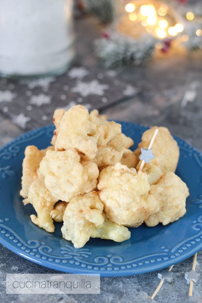 Gouden en Gebakken Bloemkool, een perfect bijgerecht voor de kersttafel, ideaal om te serveren bij elke gang, van vlees tot vis, en ook geweldig om te presenteren als fingerfood, vergezeld van kleurrijke en thematische prikkertjes.
