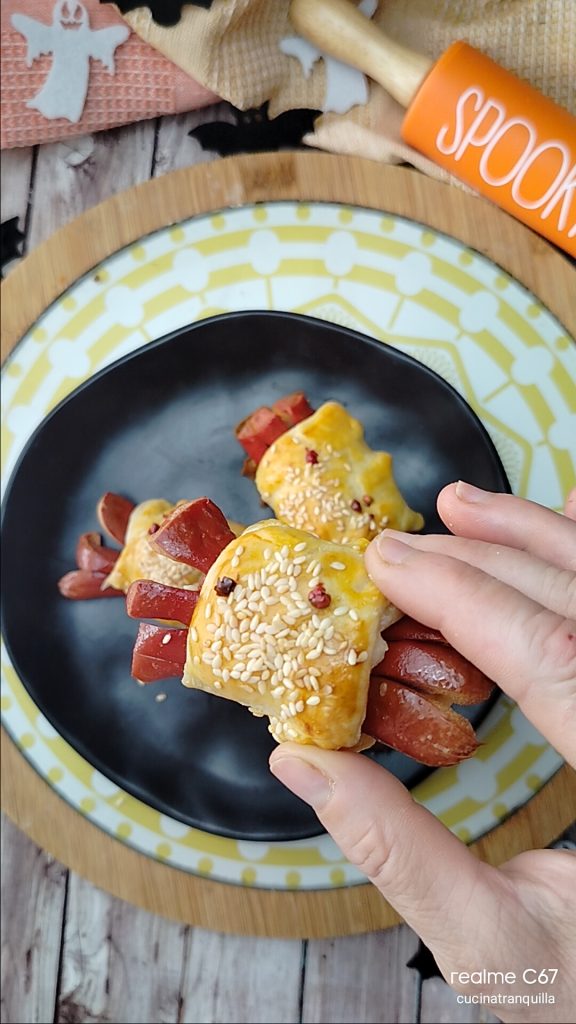 Hartige bladerdeeg spinnen, een idee voor Halloween perfect voor jong en oud, dat echt heel weinig stappen en ingrediënten vereist. Het maken ervan zal echt kinderspel zijn en u kunt het ook samen met de kleintjes thuis bereiden. Wat betreft een van de ingrediënten, de knakworsten, kunt u degene gebruiken die u verkiest, qua smaak en grootte, het belangrijkste is dat u voor het eindresultaat probeert alle gefotografeerde stappen van het recept te volgen. En u kunt ook de meest natuurlijke knakworsten van uw vertrouwde slager gebruiken. Hieronder laat ik enkele van mijn meest gelezen Halloween-recepten achter, terwijl ik aan het einde van de beschrijving de meest voorkomende vragen zal beantwoorden.