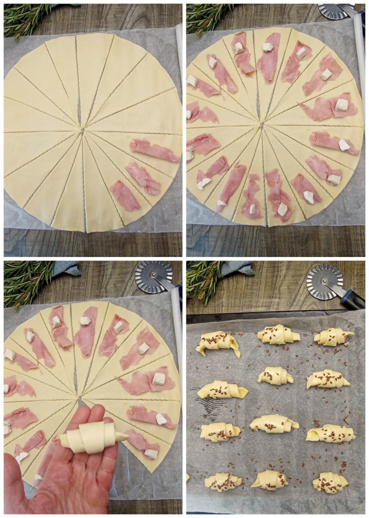 Voor het maken van de hoorntjes raad ik aan om rond bladerdeeg te gebruiken, ideaal om in partjes te verdelen, zoals in mijn geval.