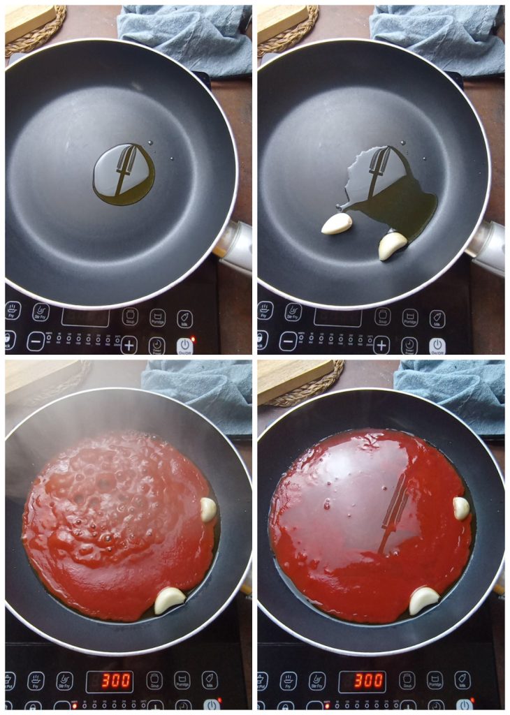 Fruit de knoflook 2 minuten in de olie in een pan.