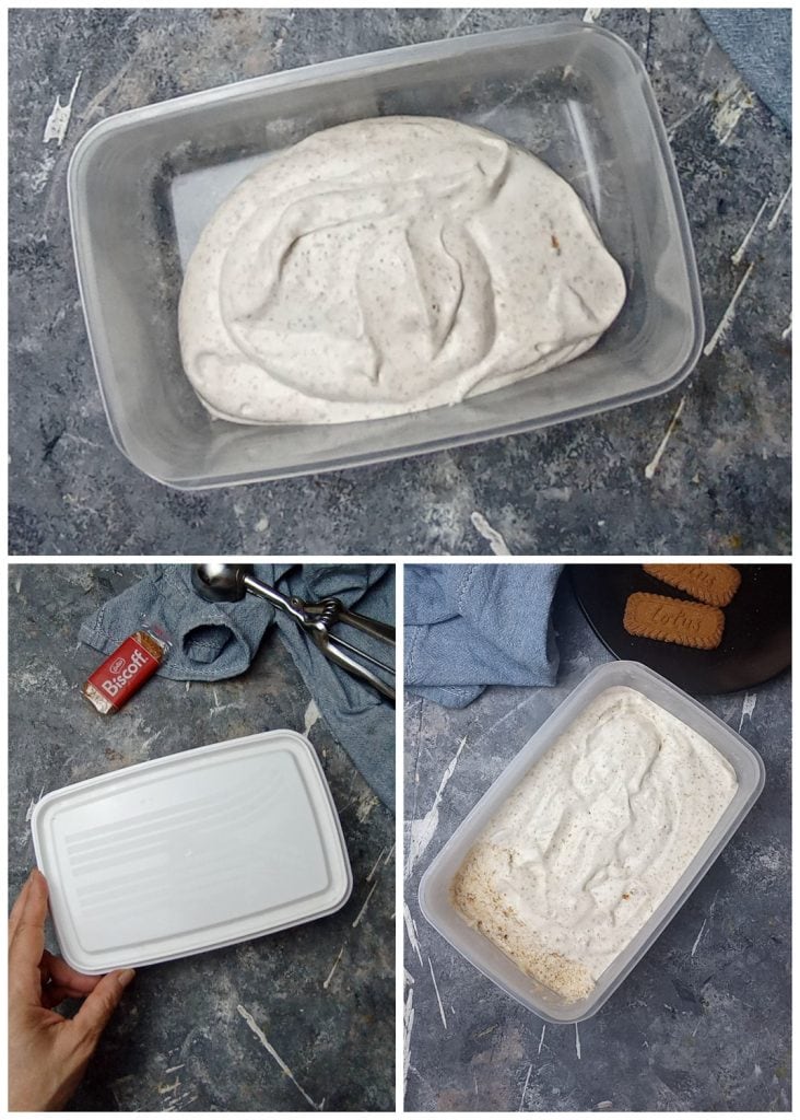 Om het Koekjesijs zonder ijsmachine te maken, zet, als je tijd hebt, de kom en de gardes ongeveer 30 minuten in de vriezer.