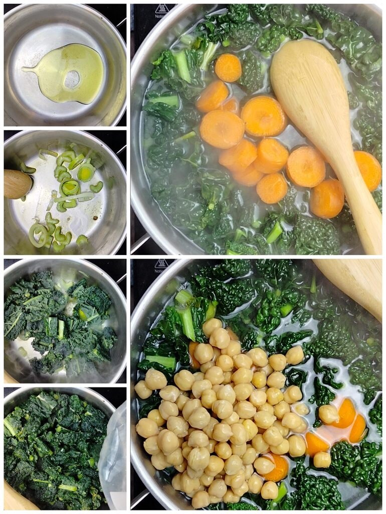 Koolsoep met pioppini-paddenstoelen en kikkererwten, een heerlijk en eenvoudig recept.