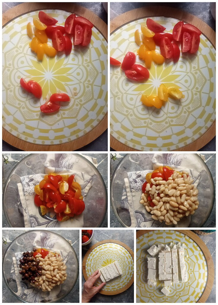 • Om de koude cannellinibonen salade met feta en olijven te maken, laten we eerst de cannellinibonen goed uitlekken.